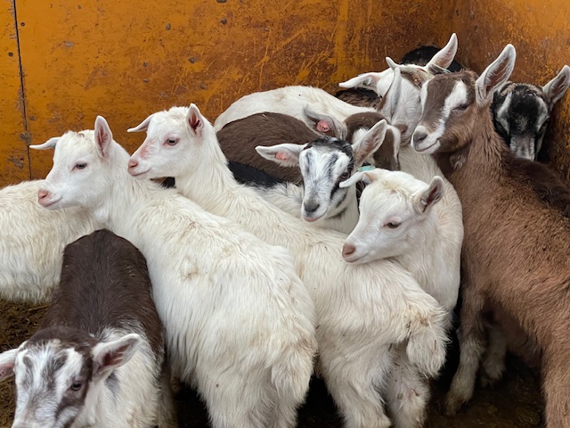 生まれたばかりの子山羊たち。警戒心が隠せません