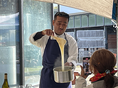 モッツァレッラチーズ実演。千代さんの笑顔が最高です