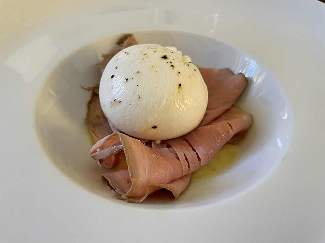 巨大なブッラータにナイフを入れて。心ときめきます