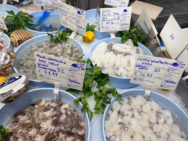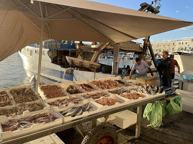 オストゥーニから海辺の街、ファザーノでチーズショップや魚市場を見た後は、海辺のすばらしいレストランで魚介をたっぷり楽しみました。
