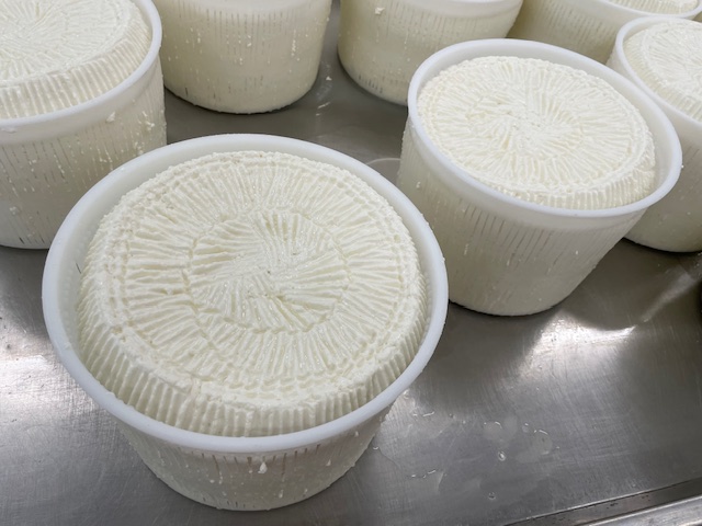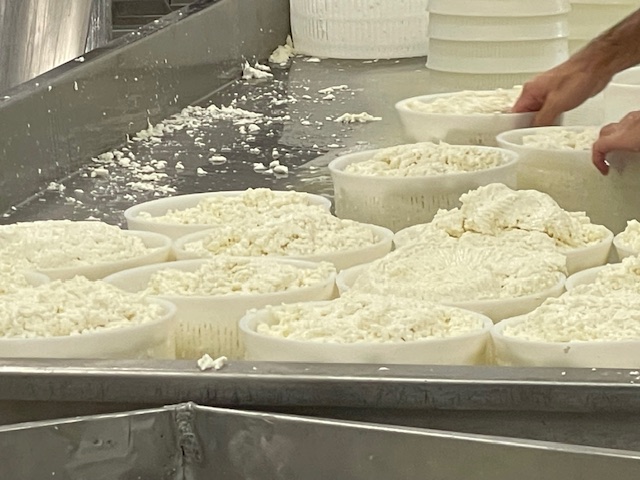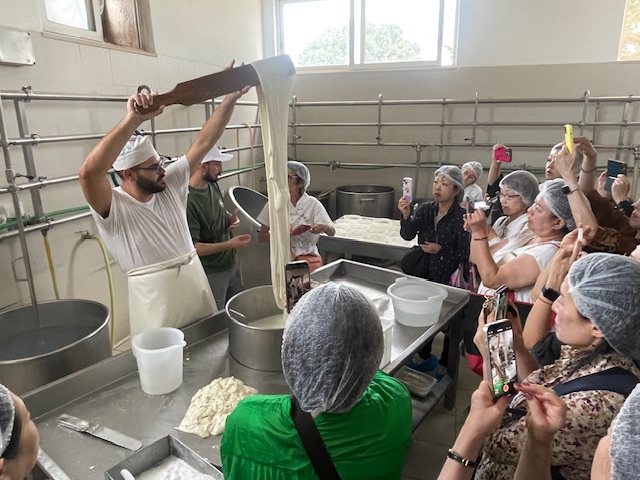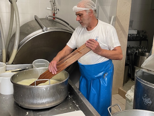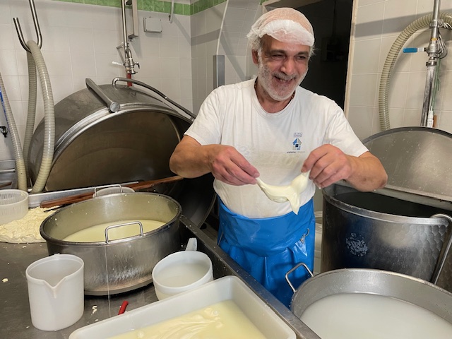 ホテルを8時半に出発して15分でチーズ工房に到着。 DOPを持つカネストラート・プリエーゼの見学が目的でしたが、生産時期は羊の群れがアブルッツォオ州からプーリア州に移動してくる12月から5月までのため、私たちが訪問した時期は山羊乳を混ぜてつくっていました。したがってDOPは名乗ることはできません。
