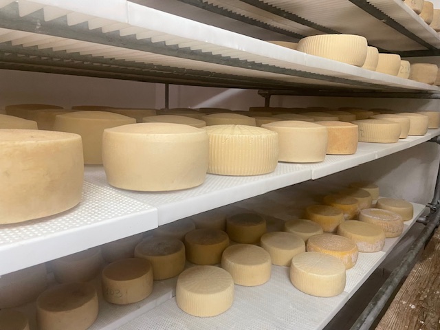 熟成室に並んだチーズ