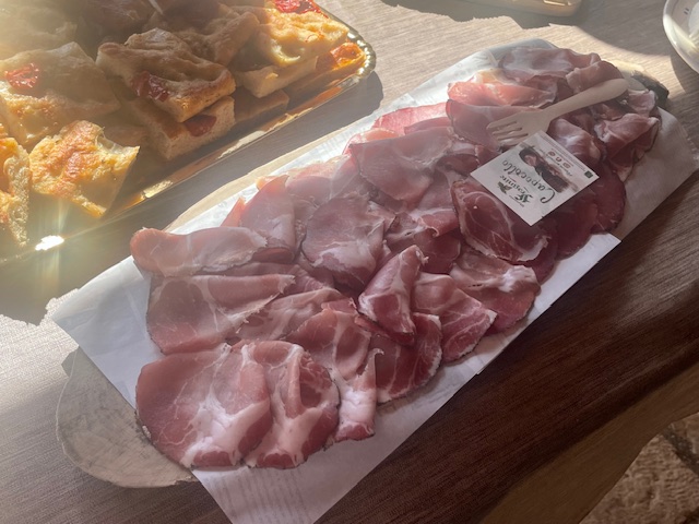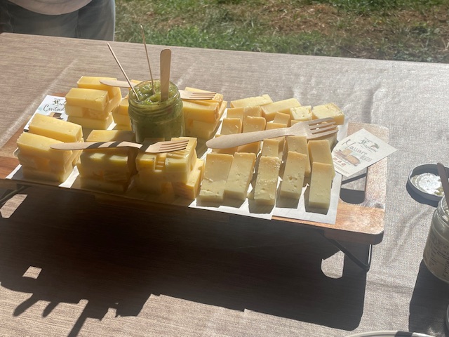 試食にはチーズと農場で製造しているサラミも