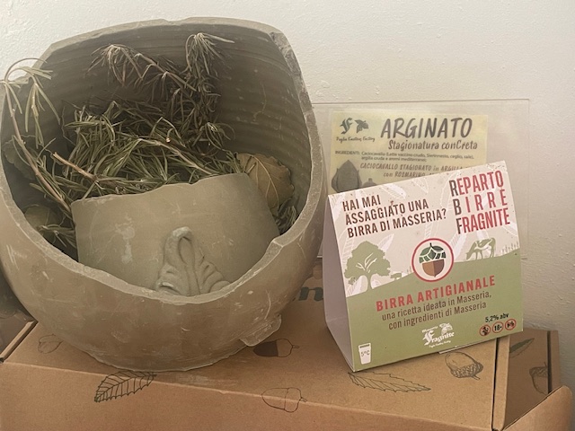 私たちが熱心に質問したからか、ご機嫌のピエトロさんはなんと陶器の中に入れて熟成したというカチョカヴァロを割ってくださいました。ピエトロさんも初めて食べるというスペシャルなチーズでした。農園で製造しているというビールも振舞ってくださり、学び多い楽しい時間でした。