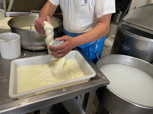 残念ながらバローネ・ディ・グラヴィーナの製造は見ることができませんでしたが、パスタフィラータのチーズの製造をたっぷり見学させていただきました。