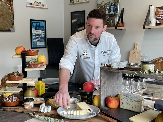ファビアンはアイデアもセンスも抜群のプレゼンをします。熟成チーズ、アレンジしたチーズは胡椒や柚子、オリーヴオイル、バターなど、隅々にファビアンのこだわりが感じられます。