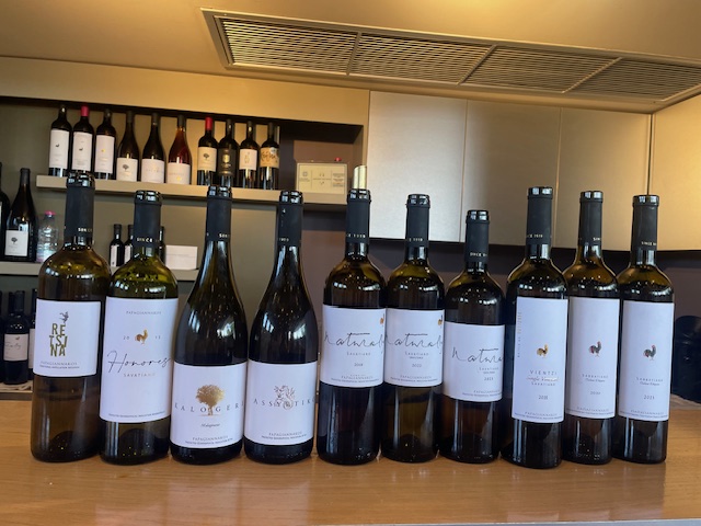 北向きで標高は0~900メートル。9割はギリシャ土着の品種を栽培しています。クレタ島原産のヴィディアノ種のワインも少量ですが生産されています。心地よい風に吹かれて11種類のワインをテースティング。ほどよく酔いが回り、思考能力はすっかりなくなってしまいました。
