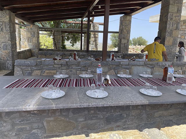 すごく立派な山小屋「ミタト」。「ミタト」とはギリシャ語で避難所、宿泊施設の意味。クレタ島の山岳地帯でミタト(複数形はミタタ)は、羊飼いの避難所として地元で集められた石で建てられた小屋をさす。ここは宿泊施設であり、チーズ作りにも使われているのだそう