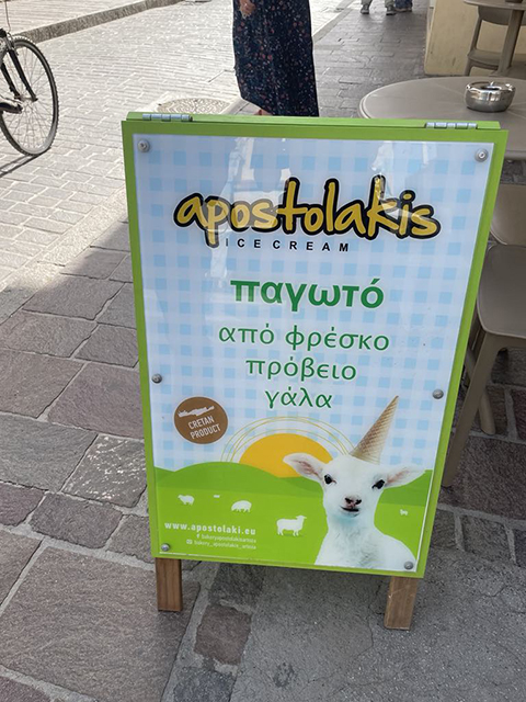 ギリシャ・ローマ、東ローマ帝国時代の古い建造物が残存していて、腹ごなしにはちょうどいい散策でした。羊乳のアイスクリームの看板を発見!さっそく味わってみました。