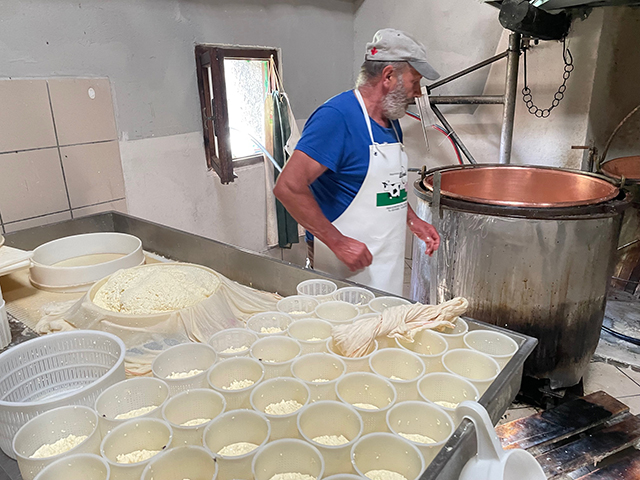 シチリアで開催された「チーズアート」で酔っ払いチーズ「ウブリアーコ」に出会い、カゼアリア社を訪問。家族一丸となり創業者の類のないチーズを開発しています。