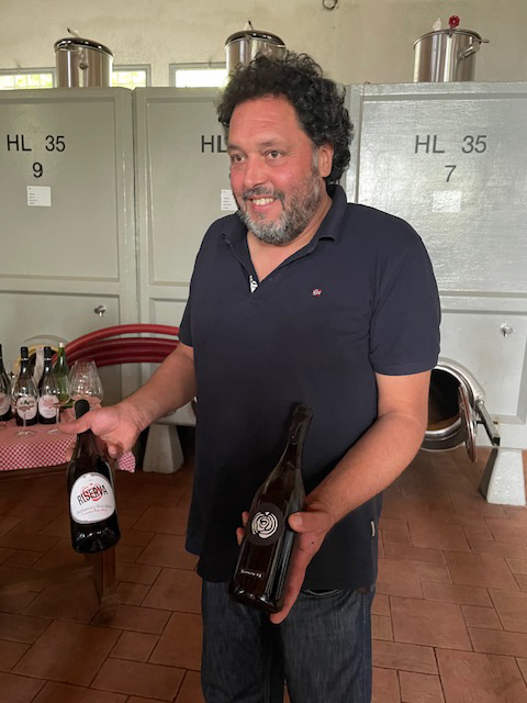 現当主のパオロ・ヴェリオの曾祖父が1931年にこの土地を購入したことからワイナリーの歴史は始まりました。標高260m、パオロが目指すのは様々な植物や生き物が共存できる森に囲まれた環境です。21haある敷地の内11haは林とヘーゼルナッツの畑。ブドウ畑は10haありますが、収穫できるのはそのうち5haだけだそうです。隣は牛舎。科学的薬剤は一切使用せず、牛糞を使った土地づくりをしています。