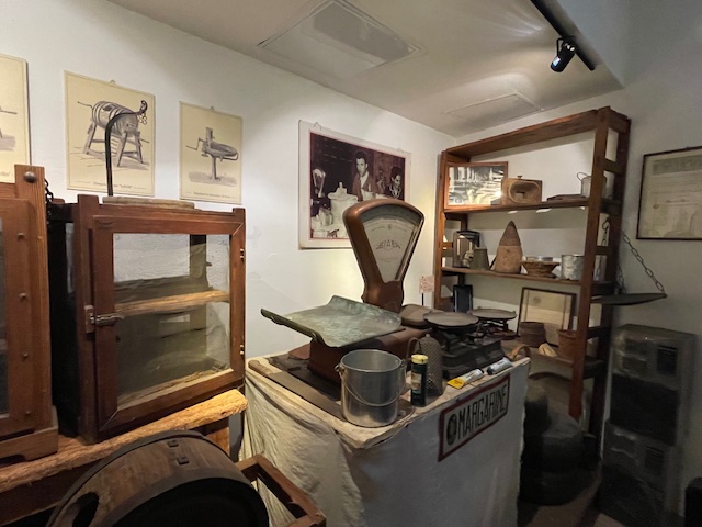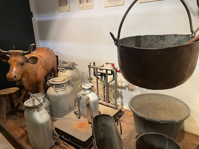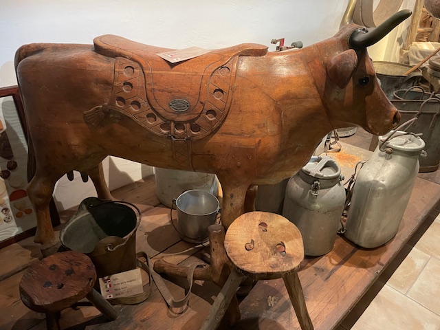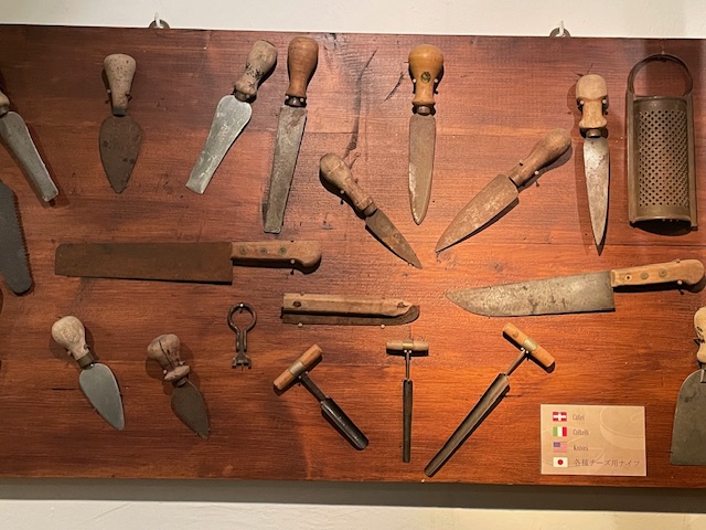 熟成庫に展示している古い道具や牛。センスの良さは真似したくなります