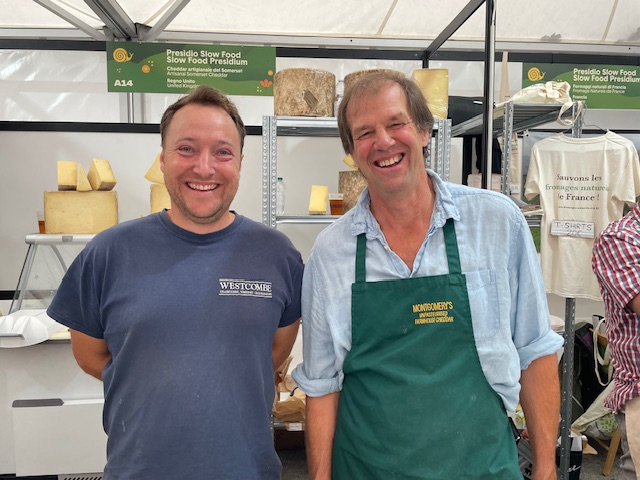続いてイギリスは、布で巻いたトラディショナルチェダーに出会ったのが2003年。ニールスヤードデイリーの初代店主だったRandolph Hodgson氏に教えていただき、翌年に農家製チェダーの生産者モンゴメリーを訪問。ブラ会場には毎回、作り手で代表のジェイミーがブースに立っていることも感動します。