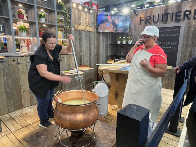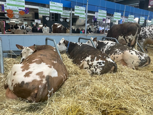 会場に入ると、日本では見たことがないようないろいろな種類の牛がゾーンごとにいたり、搾りたての乳を使ってシャレ(山小屋)風につくられたブースでチーズ製造の実演があったり、牛好きにはたまりません。