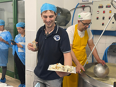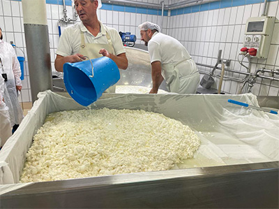 この日はビール入りの山羊乳チーズ「エレティコ」の製造を見学させていただきました。