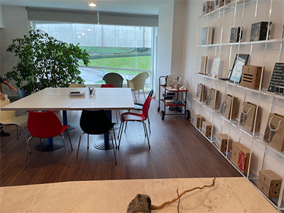 オフィスはモダンでセンスの良さは驚きます。午前中の作業が終わらないうちに作業室を見学です。