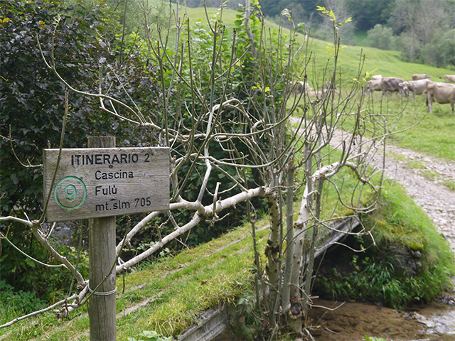 工房を示す看板。Cascina Fulú 標高は705mとあります