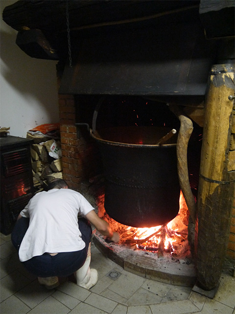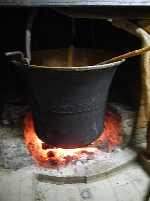火にかけられた細長い銅鍋は北イタリアの特徴です
